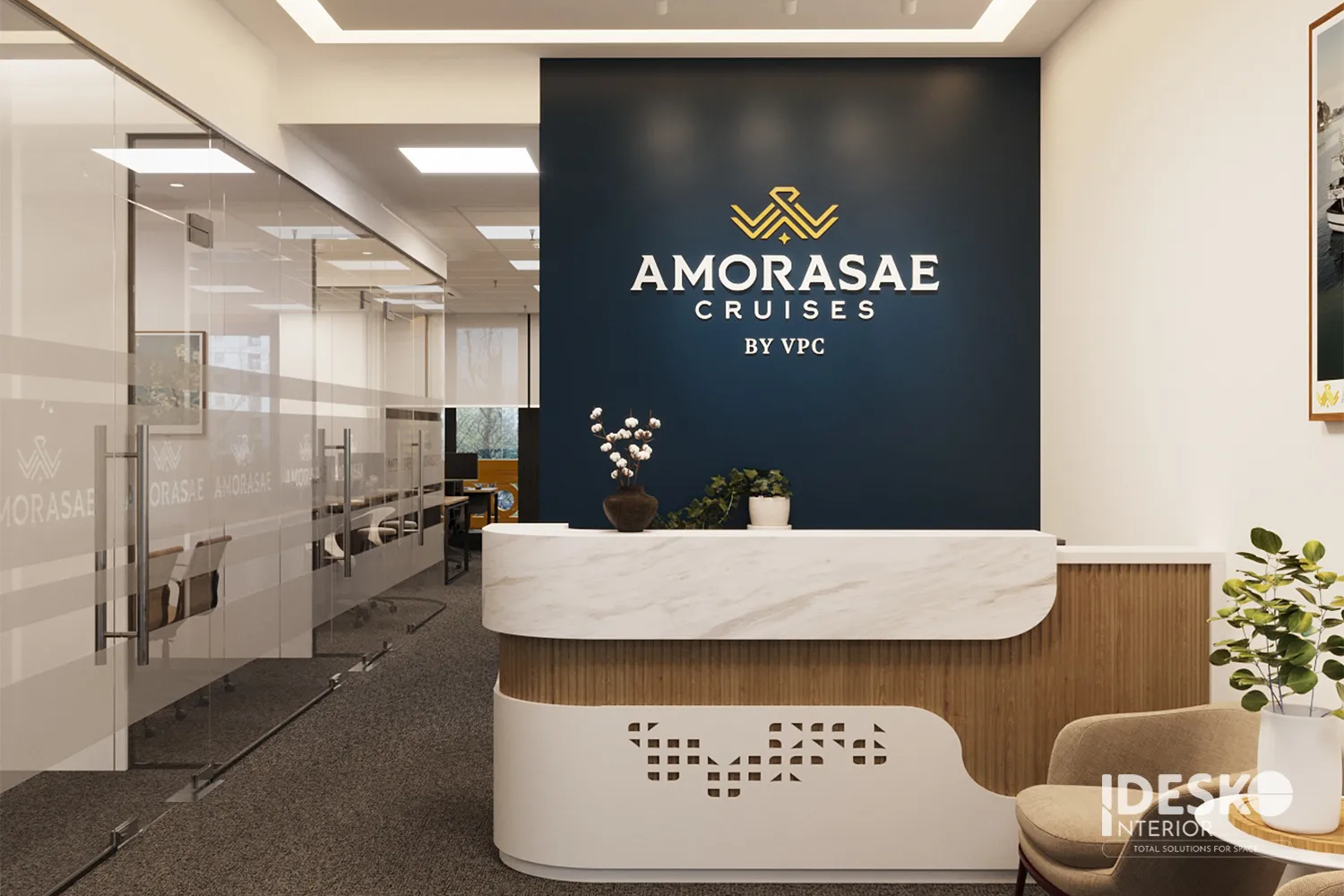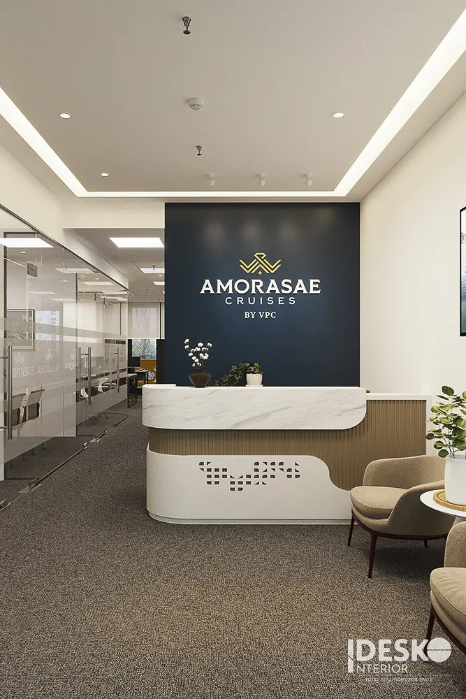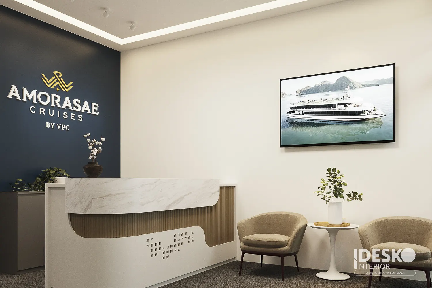 Dự án văn phòng của Công ty Cổ phần Tập đoàn Du thuyền Cao cấp Việt Nam (Amorasae Cruises) được hoàn thiện vào năm 2025 tại địa chỉ Bến tàu quốc tế Hạ Long, Bãi Cháy, TP. Hạ Long, tỉnh Quảng Ninh. Với tổng diện tích 140m2, văn phòng được thiết kế và thi công nội thất bởi Idesko Interior theo phong cách hiện đại, sang trọng và tinh tế.