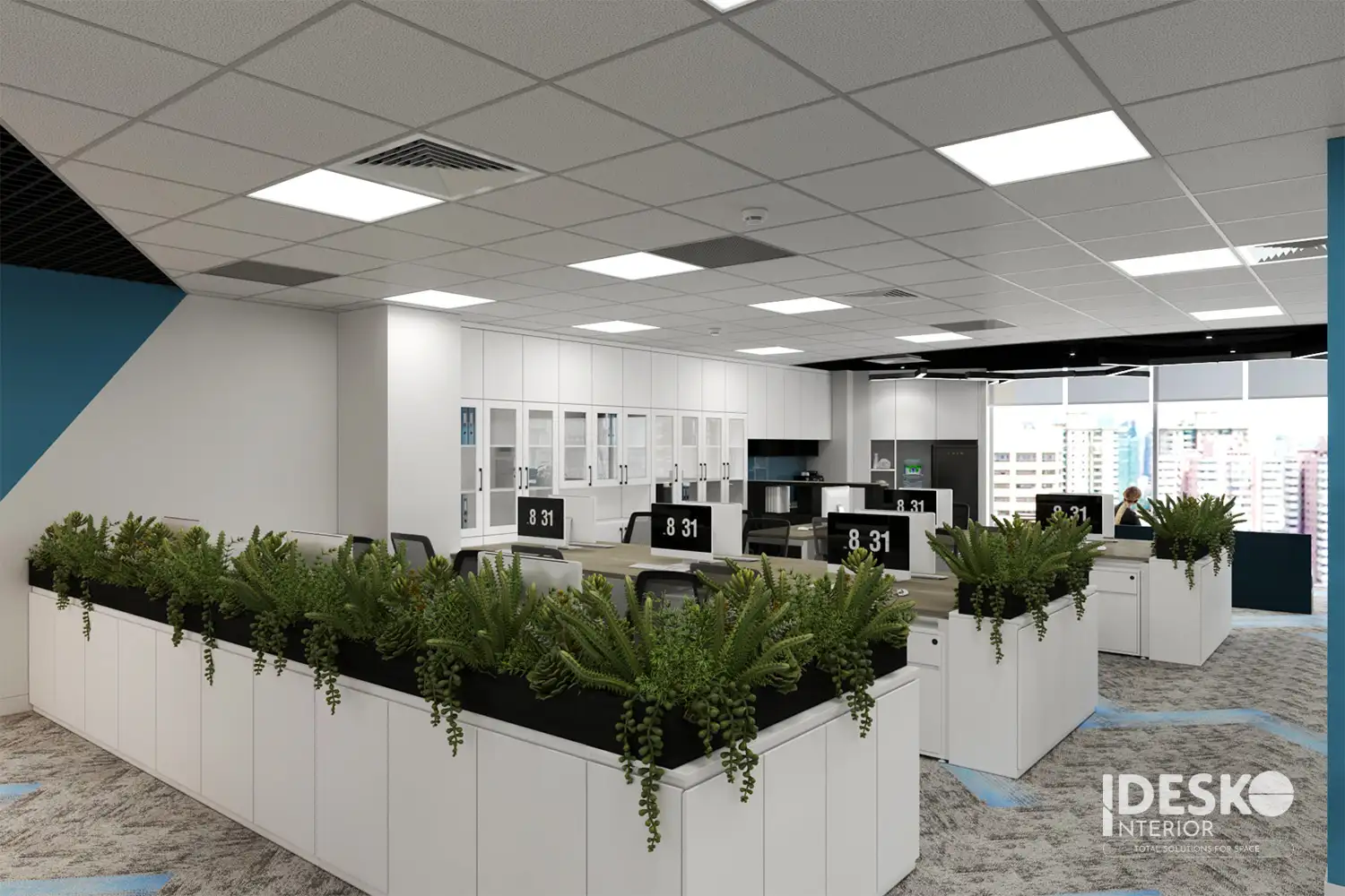Một thiết kế nội thất văn phòng công nghệ của team Idesko. Với thiết kế trần trang trí kết hợp với màu sắc nhận diện thương hiệu làm điểm nhấn. Đồ nội thất kết hợp nhiều màu sắc tạo nên một tổng thể hài hòa.